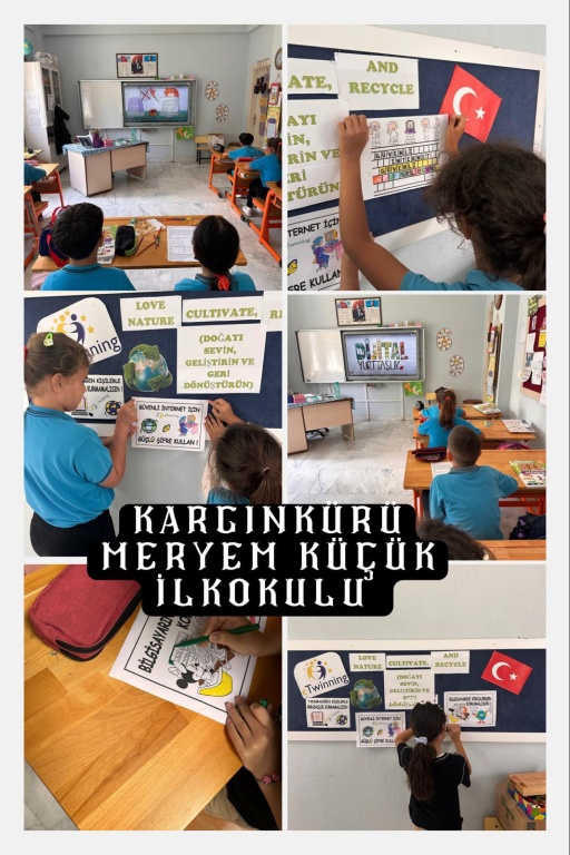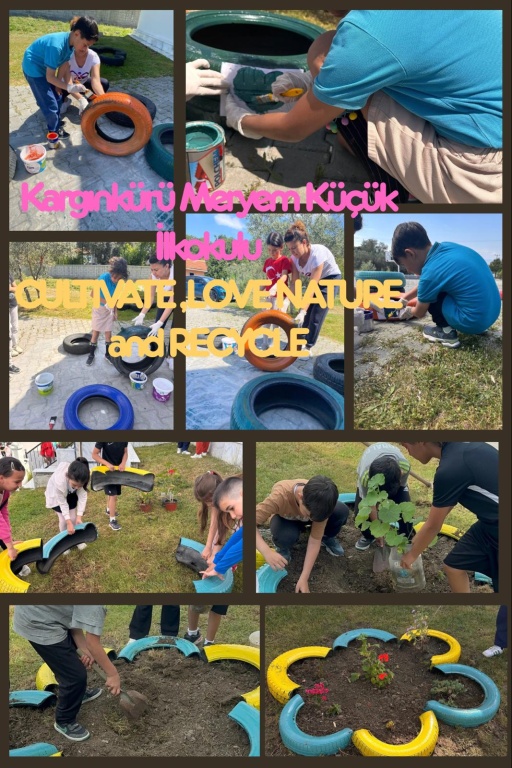 E Twinning Projemiz Doğayı Sevin Geliştirin ve Geri Dönüştürün projesini 3/A sınıf öğretmenimiz Ebru Atasoy öğrencileriyle birlikte gerçekleştirdi.Projede öğrenciler doğa ile iç içe etkinlikler yapıp ürünlerini yetiştirdiler.Geri dönüşüm çalışmaları ile atık lastikleri kullanarak okul bahçemize çiçeklik için saksılar yapıp geri dönüşümün hayatımızın bir parçası olduğu gösterildi.Öğrenciler yaparak yaşayarak doğayı daha iyi tanıyıp onu koruyup kollamayı bir görev edindiler.